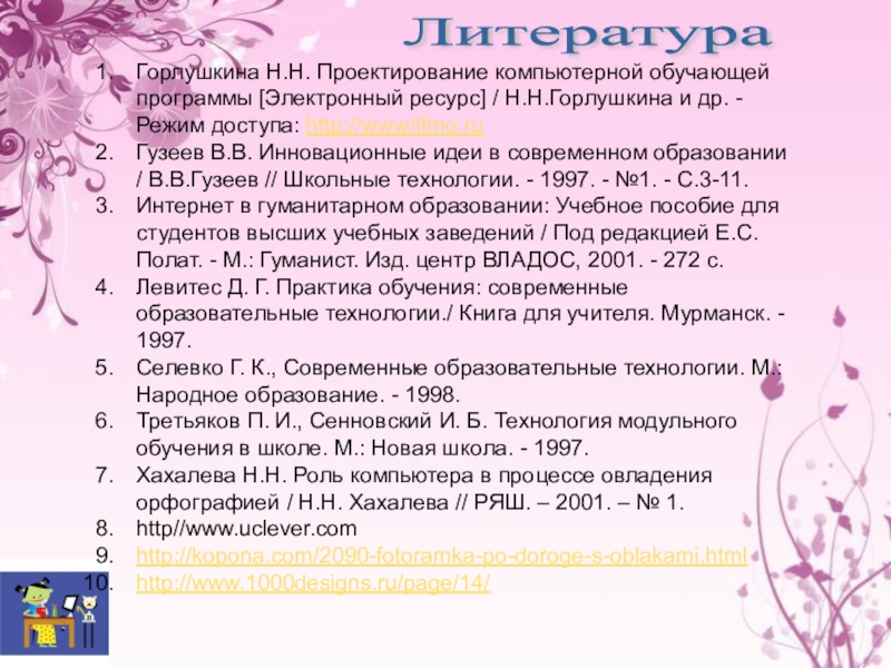 Селевко Г. К., Современные образовательные технологии. М.: Народное образование. - 1998.