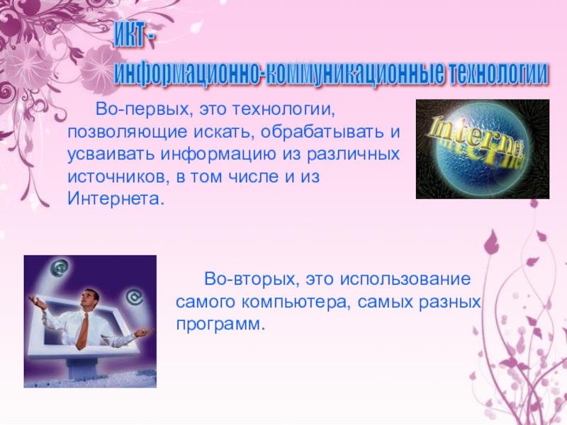 Во-первых, это технологии, позволяющие искать, обрабатывать и усваивать информацию из различных источников, в том числе и из Интернета.