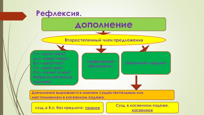 Дополнения выражаются именем существительным или местоимением в косвенном падеже.