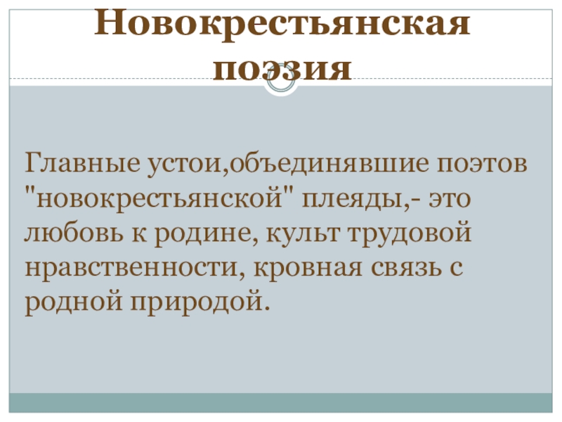 Новокрестьянская поэзияГлавные устои,объединявшие поэтов