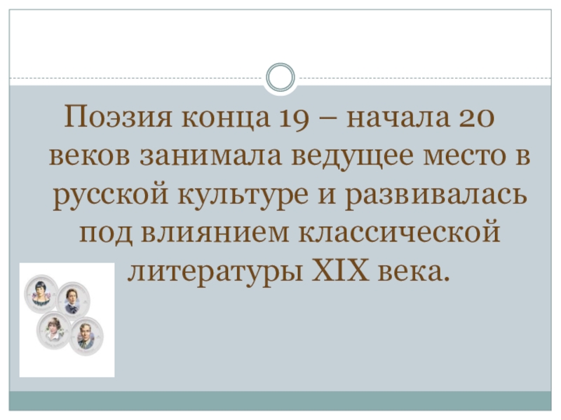 Слайд 20Поэзия конца 19 – начала 20 веков занимала ведущее место в