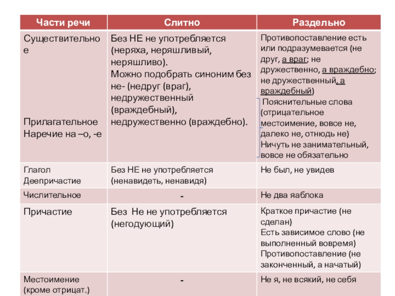 Презентация, доклад на тему Схема Правописание НЕ с разными частями речи