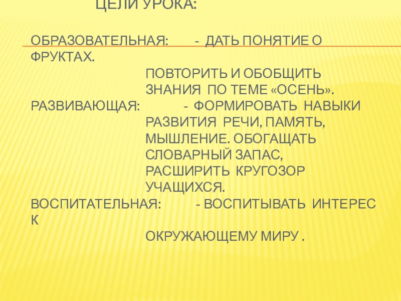 знания по теме «Осень». Развивающая: - Формировать навыки