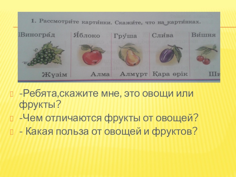 Слайд 9-Ребята,скажите мне, это овощи или фрукты?