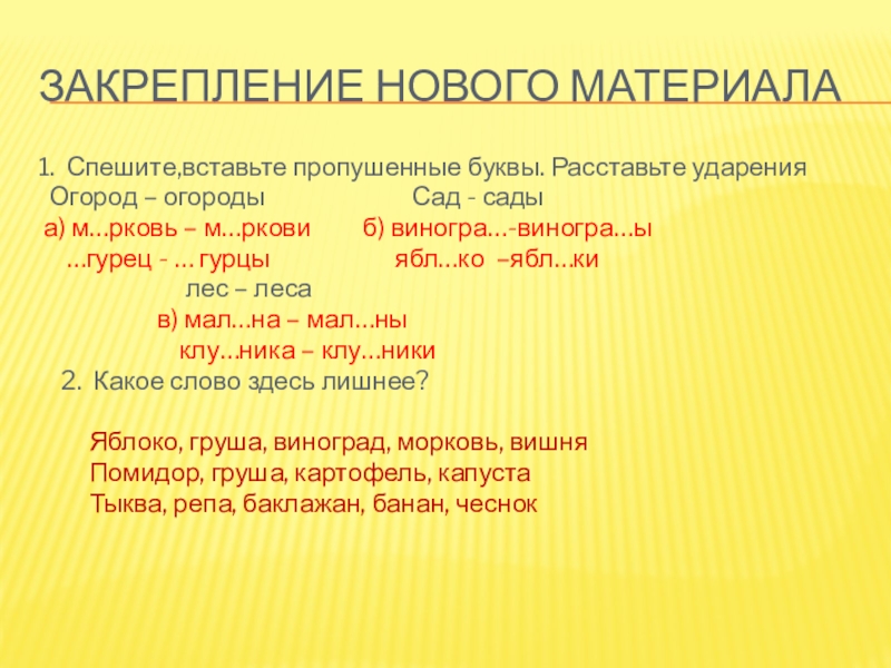 а) м…рковь – м…ркови б) виногра…-виногра…ы