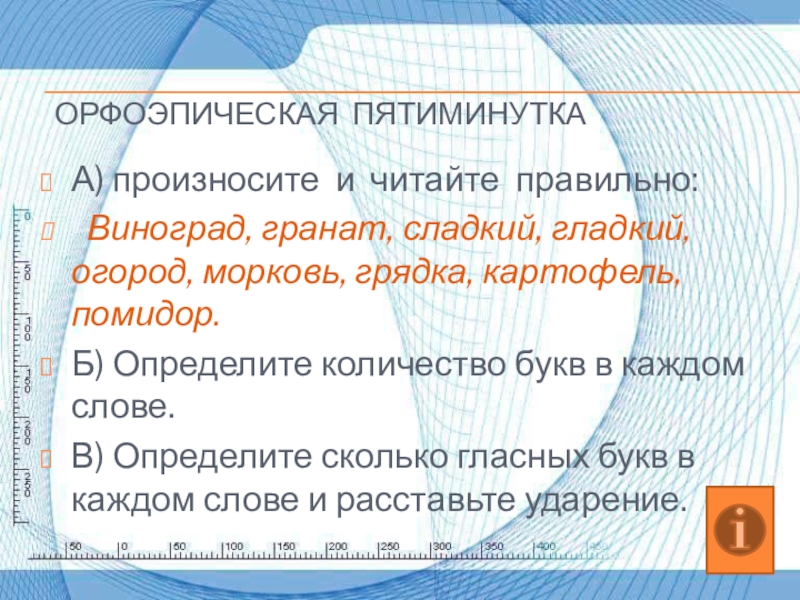 В) Определите сколько гласных букв в каждом слове и расставьте ударение.