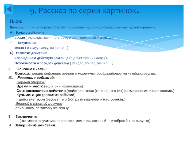 9. Рассказ по серии картинок.
