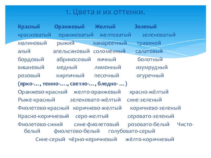 1. Цвета и их оттенки.