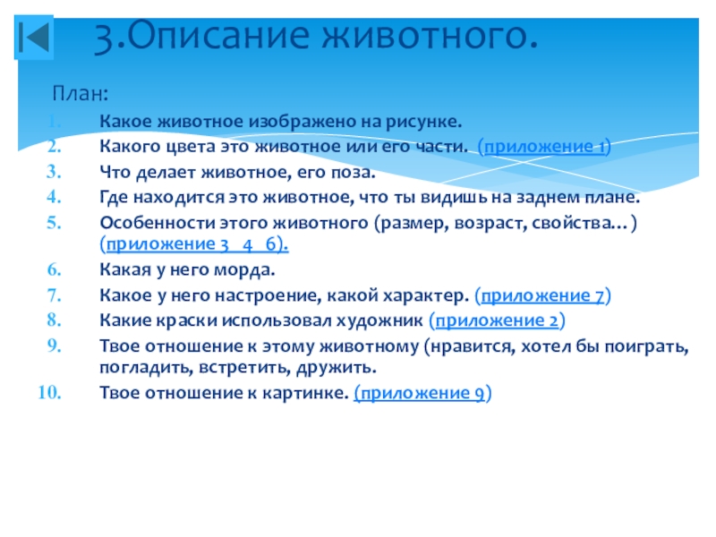 3.Описание животного.