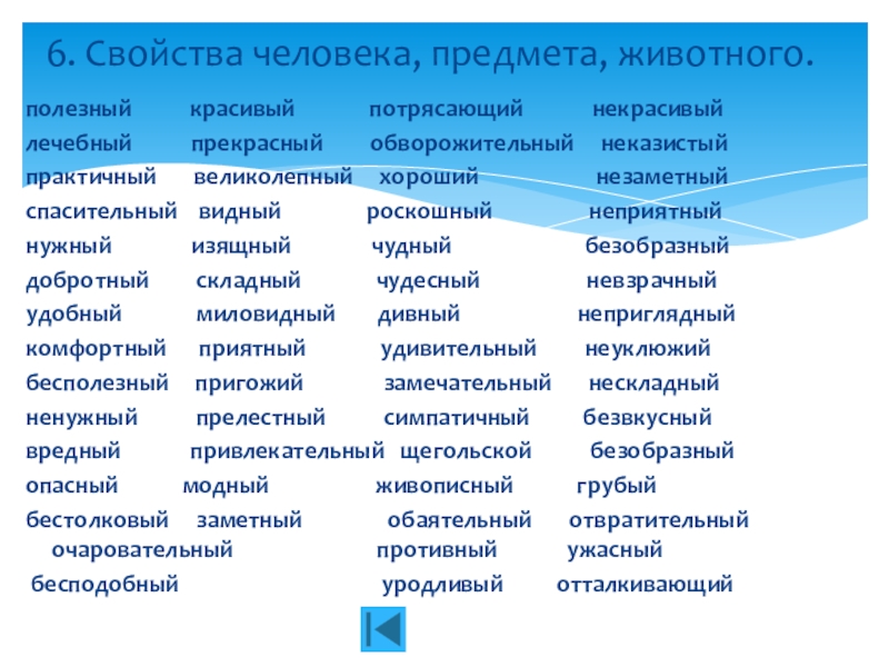 6. Свойства человека, предмета, животного.