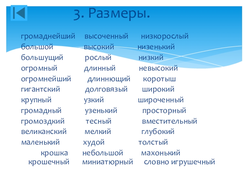 3. Размеры.