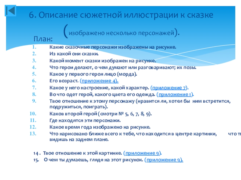 6. Описание сюжетной иллюстрации к сказке (изображено несколько персонажей).