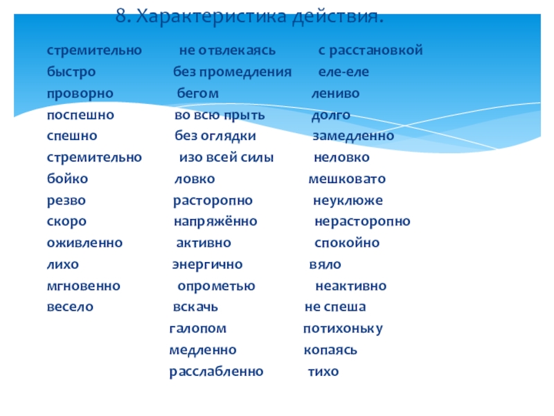 8. Характеристика действия.