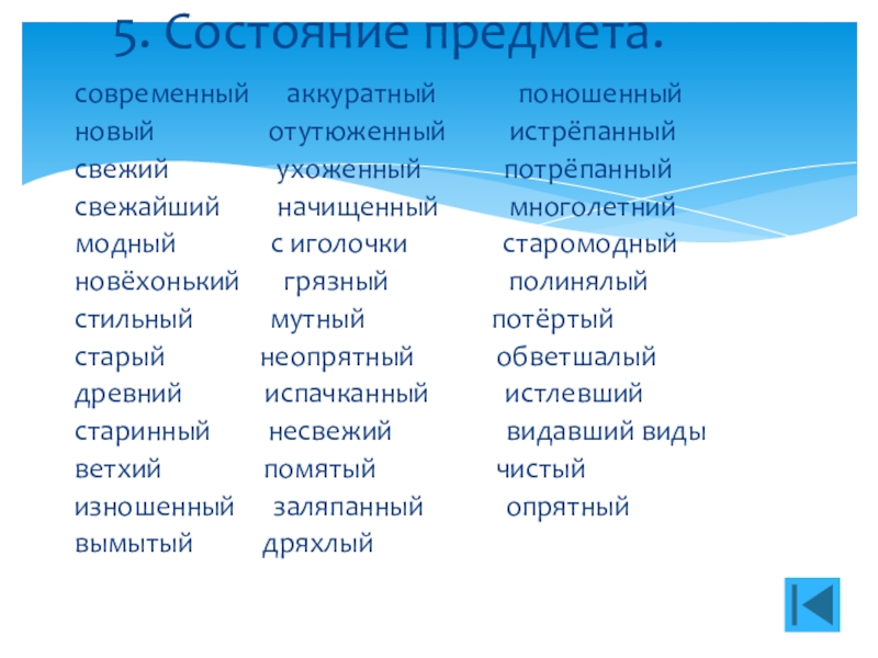 5. Состояние предмета.