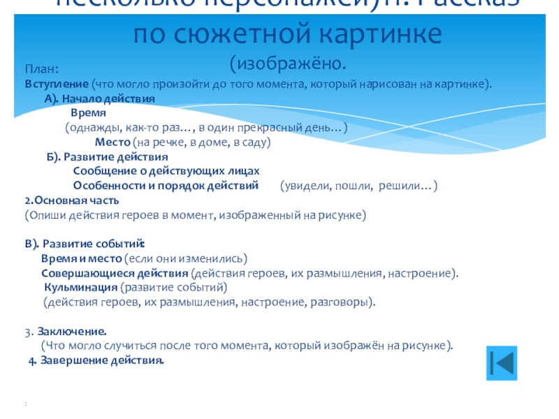 несколько персонажей)11. Рассказ по сюжетной картинке