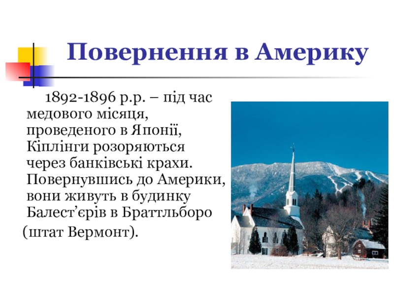 В Вермонті Кіплінг пише оповідання