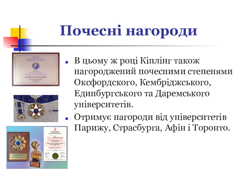 Слайд 21Почесні нагороди