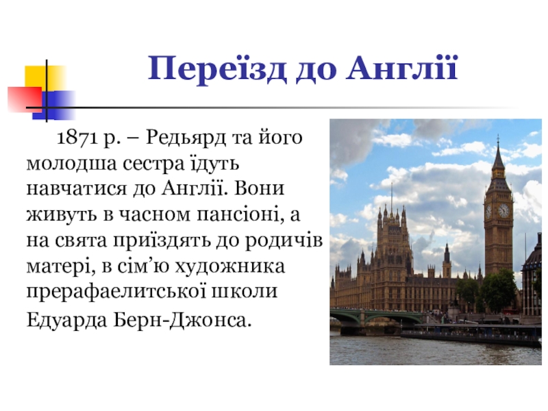 Слайд 5Переїзд до Англії