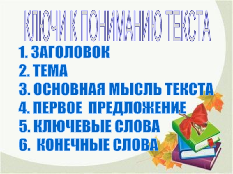 Слайд 24 КЛЮЧИ К ПОНИМАНИЮ ТЕКСТА