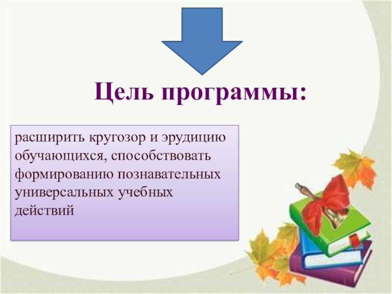 Слайд 6расширить кругозор и эрудицию обучающихся, способствовать формированию познавательных универсальных учебных действий