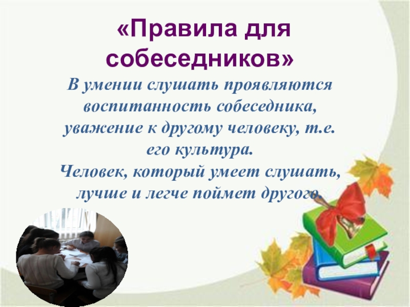 Слайд 19 «Правила для собеседников»