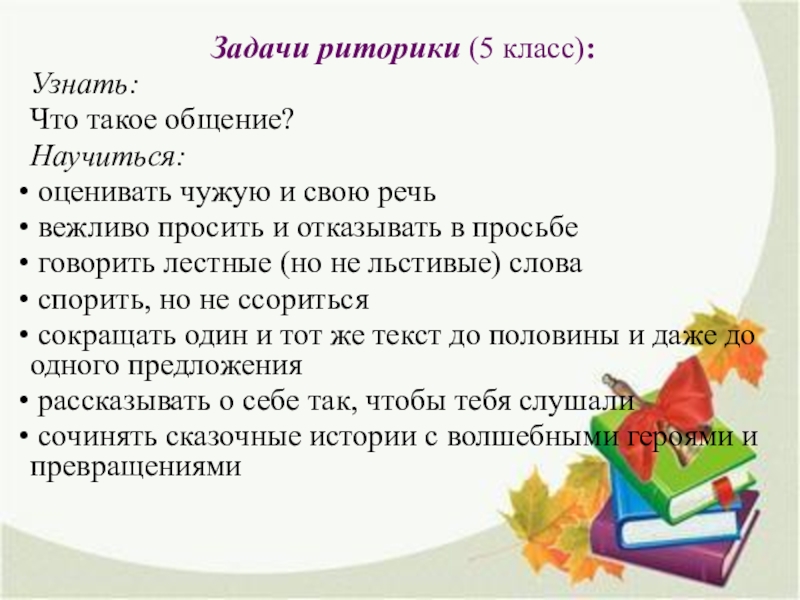 Слайд 10Задачи риторики (5 класс):