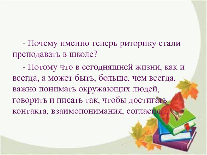 Слайд 8- Почему именно теперь риторику стали преподавать в школе?