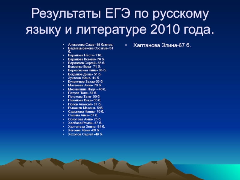 Слайд 7Результаты ЕГЭ по русскому языку и литературе 2010 года.