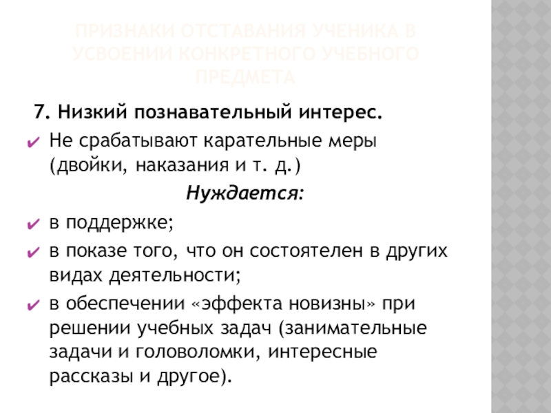 Имеет низкую оценку по предмету, потому что присутствует дефицит внимания с гиперактивностью, несформированность учебных навыков, следовательно низкий познавательный интерес и низкая работоспособность.