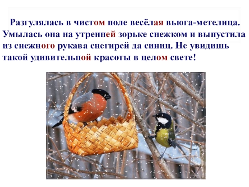 Разгулялась в чист… поле весёл… вьюга-метелица. Умылась она на утренн… зорьке снежком и выпустилаиз снежн…