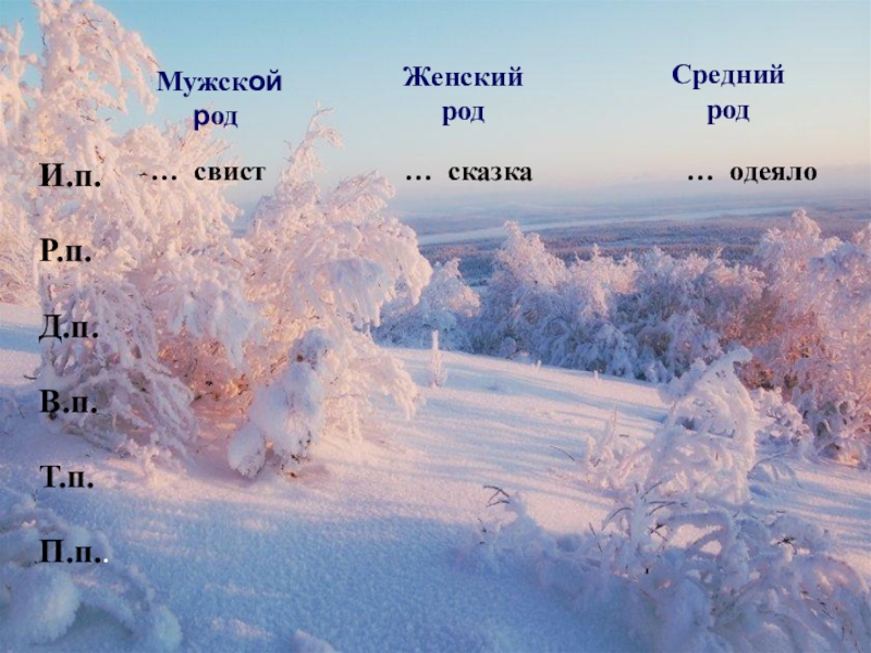 Мужской    род     СреднийродИ.п.Р.п.Д.п.В.п.Т.п.П.п.. … свист