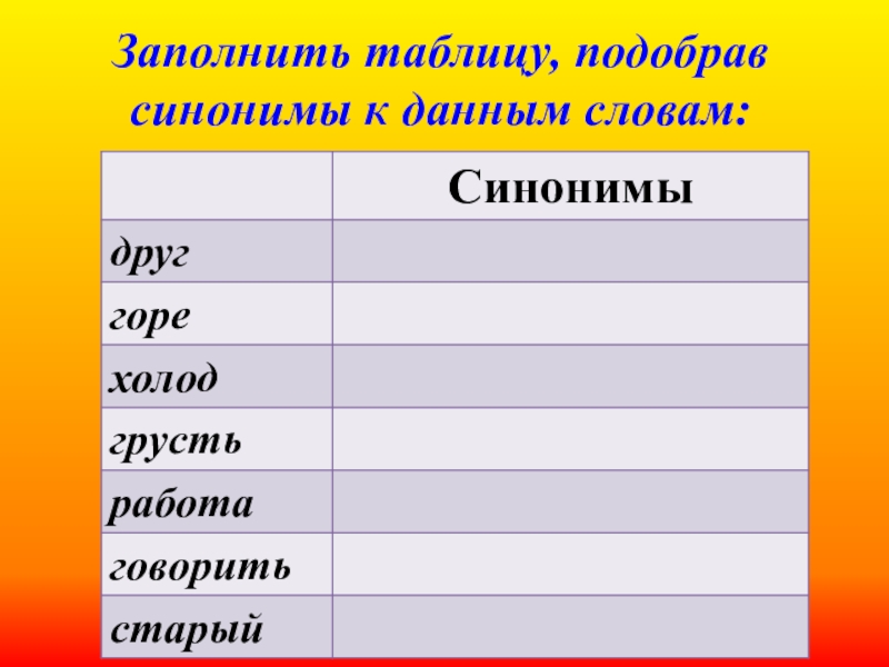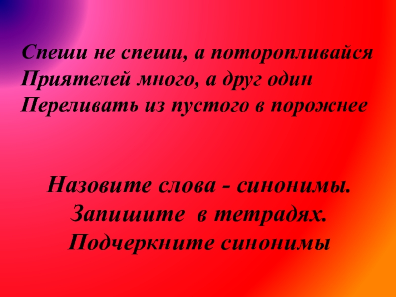 Назовите слова - синонимы. Запишите в тетрадях. Подчеркните синонимы