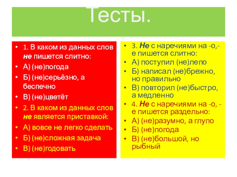 3. Не с наречиями на -о,-е пишется слитно: