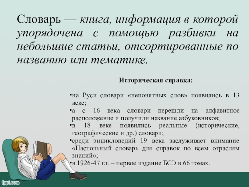в 18 веке появились реальные (исторические, географические и др.) словари;