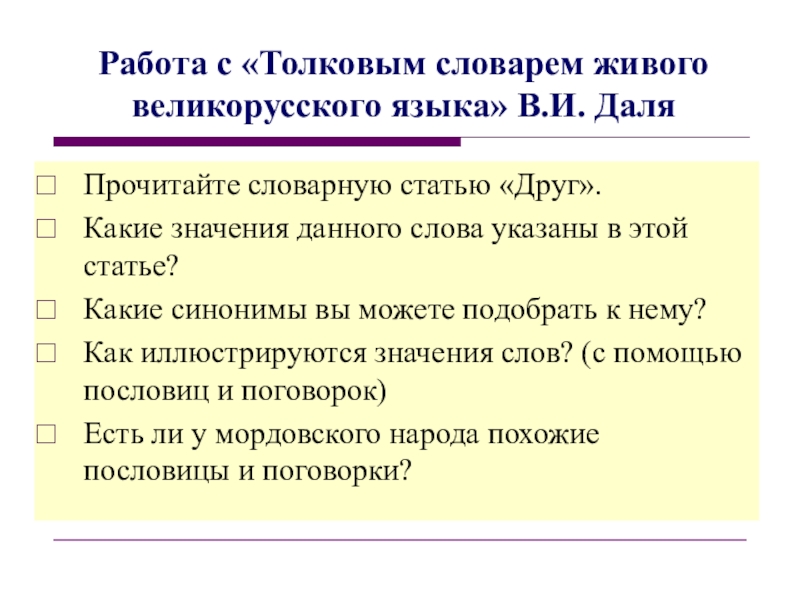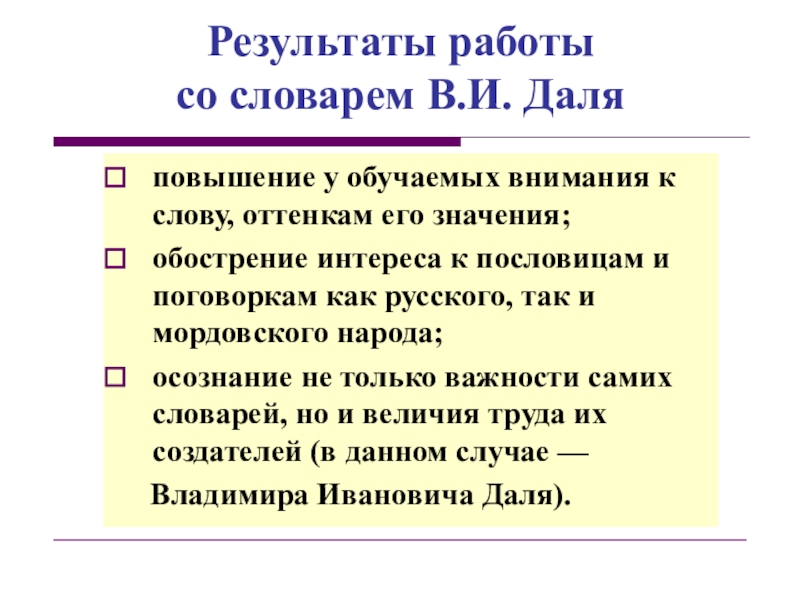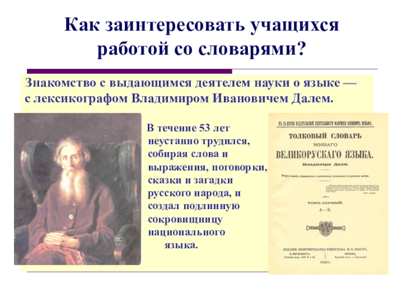 Слайд 6Работа с «Толковым словарем живого великорусского языка» В.И. Даля