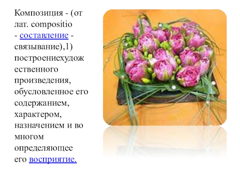 Слайд 6Композиция - (от лат. compositio - составление - связывание),1) построениехудожественного произведения, обусловленное его