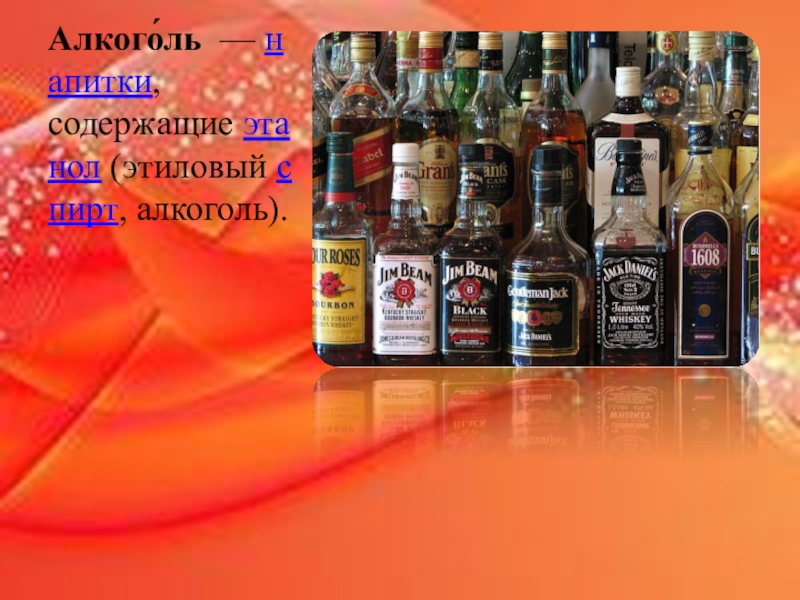 Слайд 3Алкого́ль  — напитки, содержащие этанол (этиловый спирт, алкоголь).