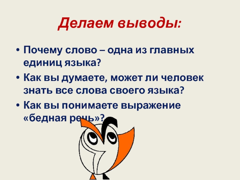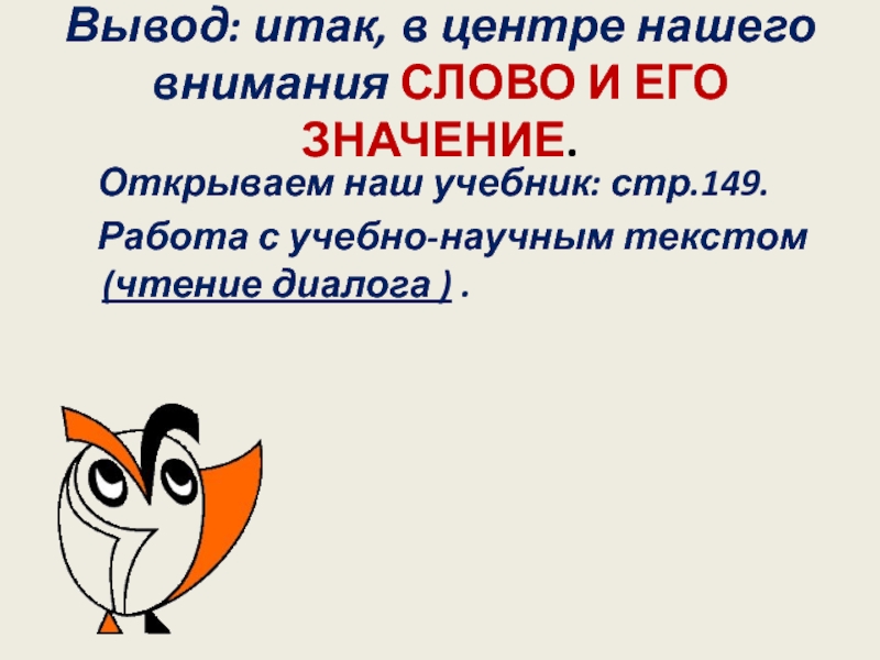 Вывод: итак, в центре нашего внимания СЛОВО И ЕГО ЗНАЧЕНИЕ.