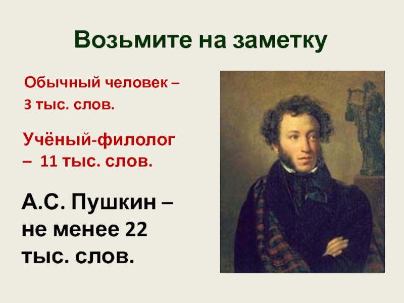 (10 000), устаревшие слова (30 000), имена собственные и прозвища (25 000), слова-однодневки, которые невозможно сосчитать, диалектные слова (около200 000).