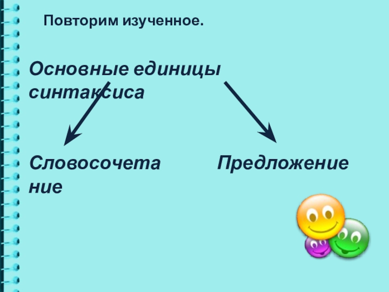 Основные единицы синтаксисаСловосочетаниеПредложениеПовторим изученное.