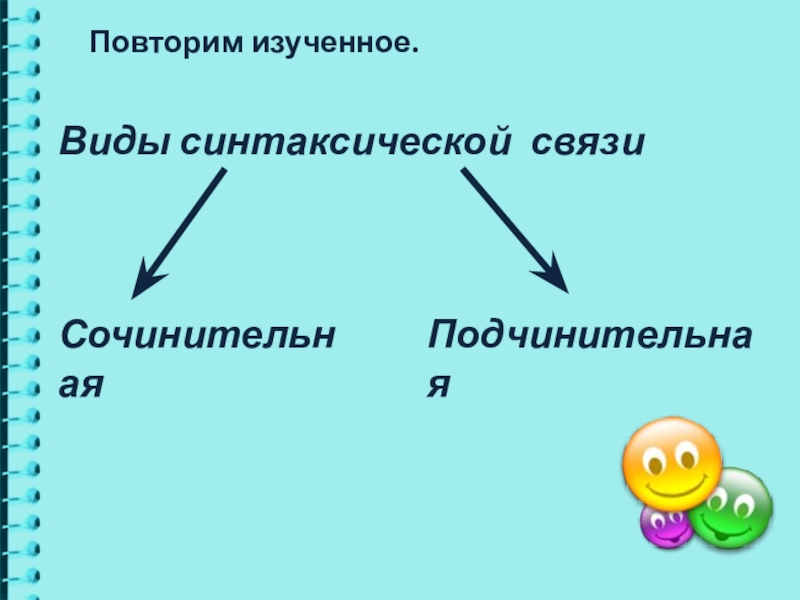 Виды синтаксической связиСочинительнаяПодчинительнаяПовторим изученное.