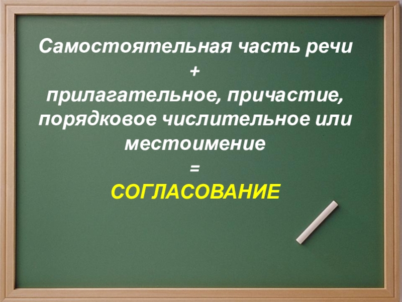 Самостоятельная часть речи+прилагательное, причастие, порядковое числительное или местоимение=СОГЛАСОВАНИЕ