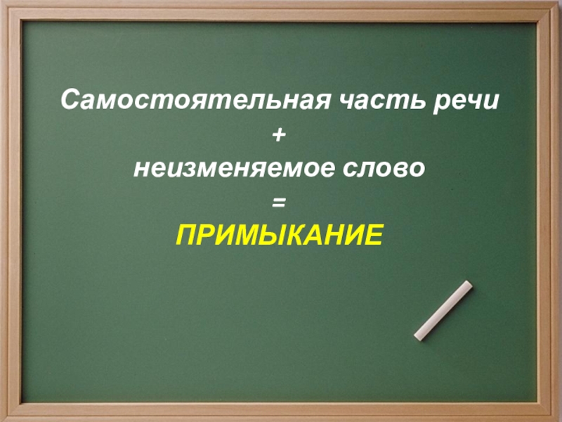 Самостоятельная часть речи+неизменяемое слово=ПРИМЫКАНИЕ