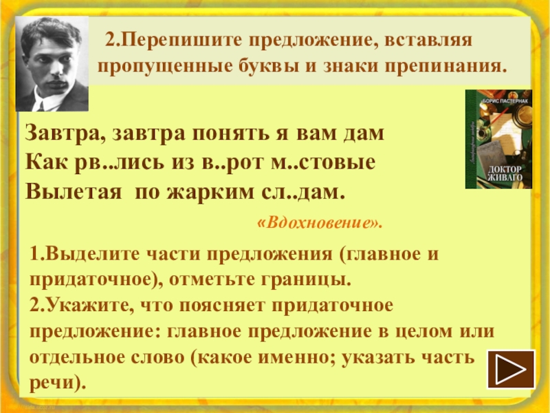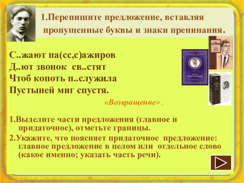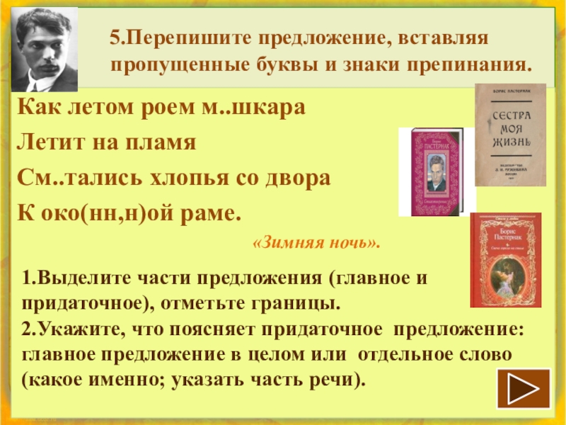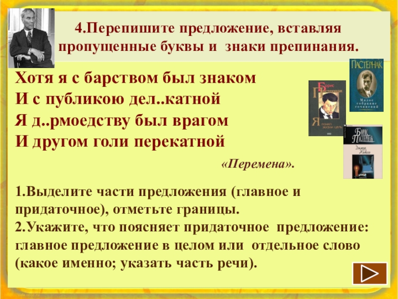 Слайд 124.Перепишите предложение, вставляя пропущенные буквы и знаки препинания.