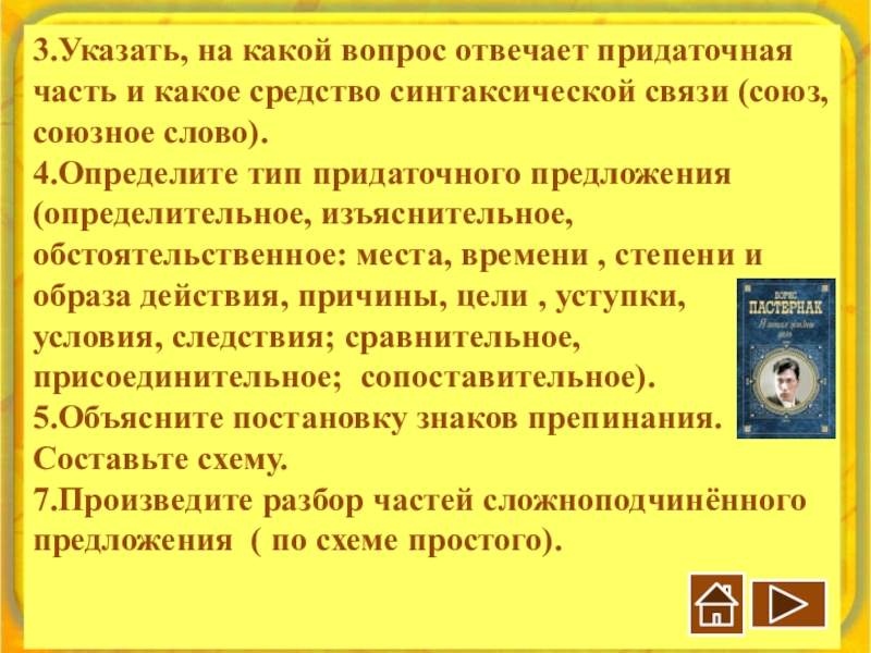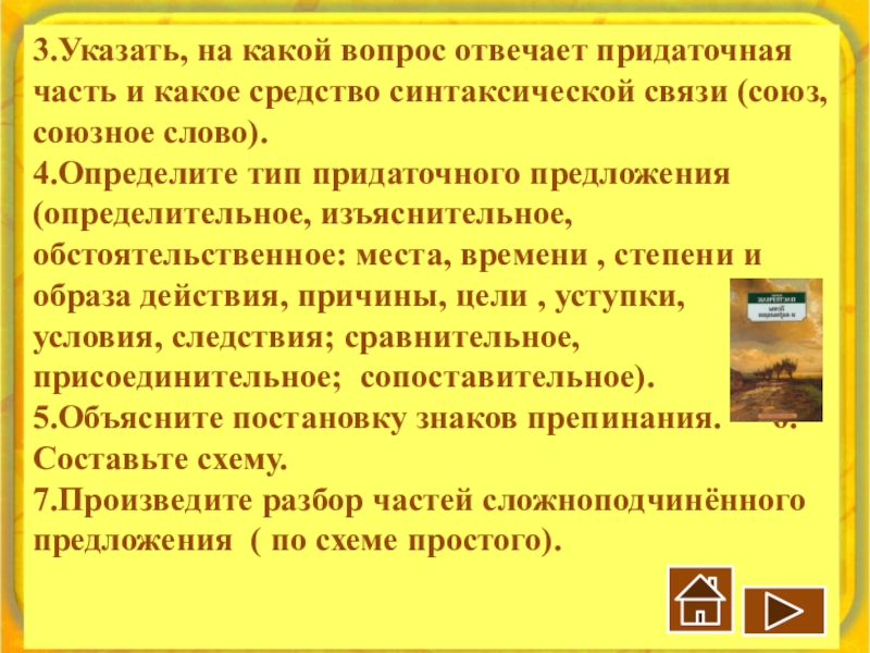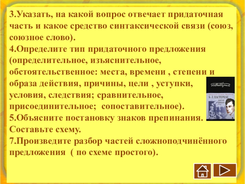 Слайд 133.Указать, на какой вопрос отвечает придаточная часть и какое средство синтаксической