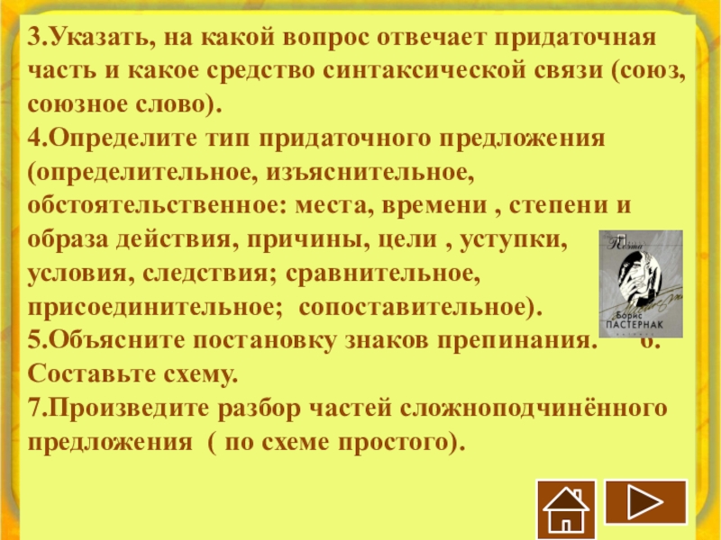 Слайд 43.Указать, на какой вопрос отвечает придаточная часть и какое средство синтаксической