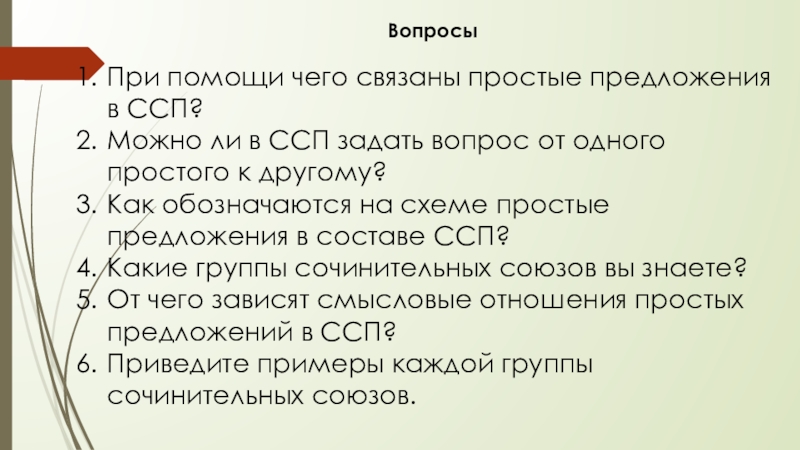 ВопросыПри помощи чего связаны простые предложения в ССП?Можно ли в ССП задать вопрос от одного простого к