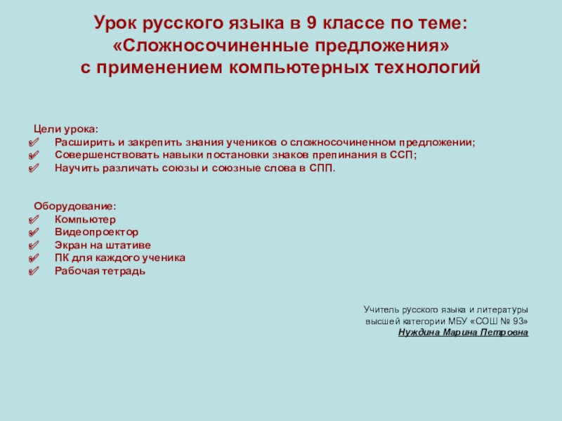 Расширить и закрепить знания учеников о сложносочиненном предложении;