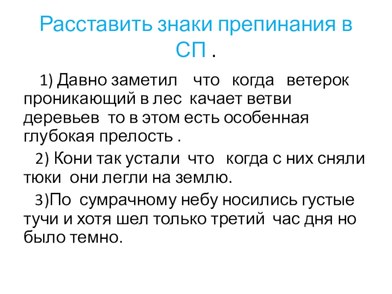 Расставить знаки препинания в СП .  1) Давно заметил  что  когда  ветерок проникающий