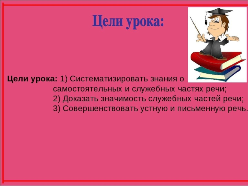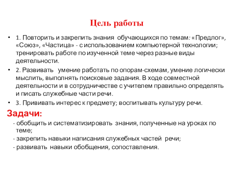 1. Повторить и закрепить знания обучающихся по темам: «Предлог», «Союз»,